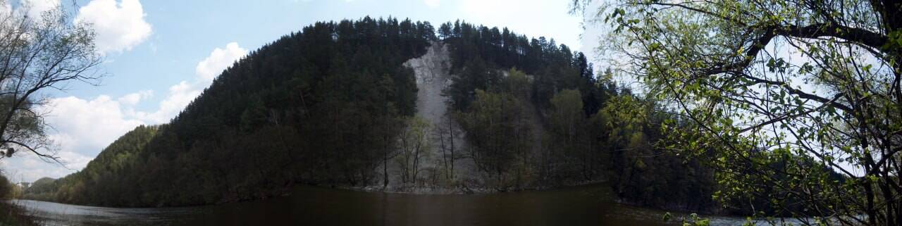 Правый, противоположный, берег реки Северский Донец – возвышенность. Это северная граница Донецкого кряжа, поднимается над уровнем реки на 80–100 м. Но склоны в этом районе довольно круты, местами до 70 градусов и более. Называют их меловыми, вероятно, из-за того, что меловые склоны более красивы, хотя здесь встречаются и известняки, и глины. Склоны гор также покрыты лесом.