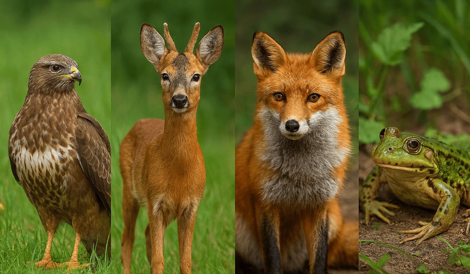 Из живности: норка, ондатра, нутрия, ласка, куница, белка, заяц, лисица, косуля; енотовидная собака, кабан, волк и лось.